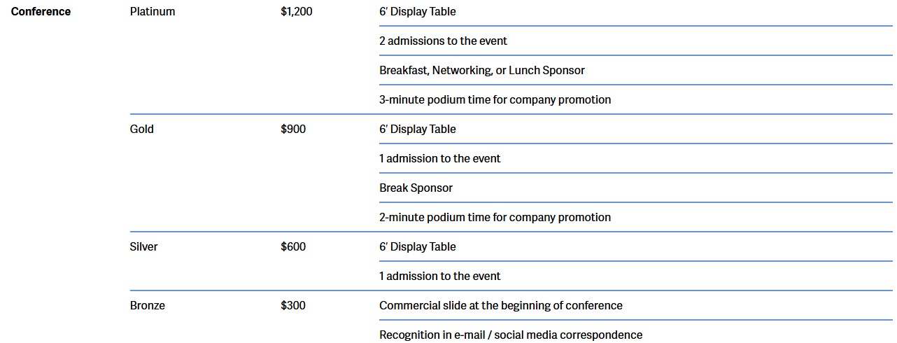 *Bronze registration includes commercial slide at the beginning of the conference and recognition in emails
